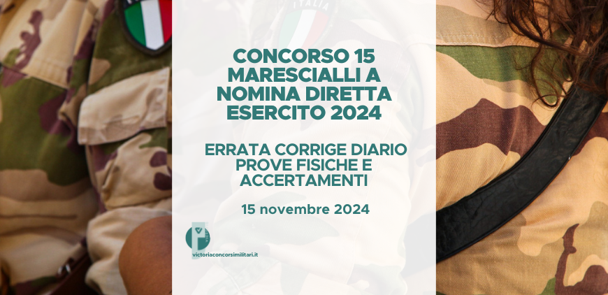 Concorso 15 Marescialli a Nomina Diretta Esercito 2024 – Errata Corrige Diario Prove Fisiche e Accertamenti